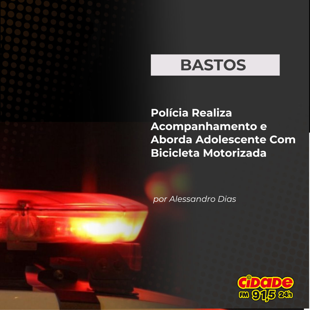 Geral BASTOS: Polícia Realiza Acompanhamento e Aborda Adolescente Com Bicicleta Motorizada 7 de outubro de 2025 Nenhum comentário