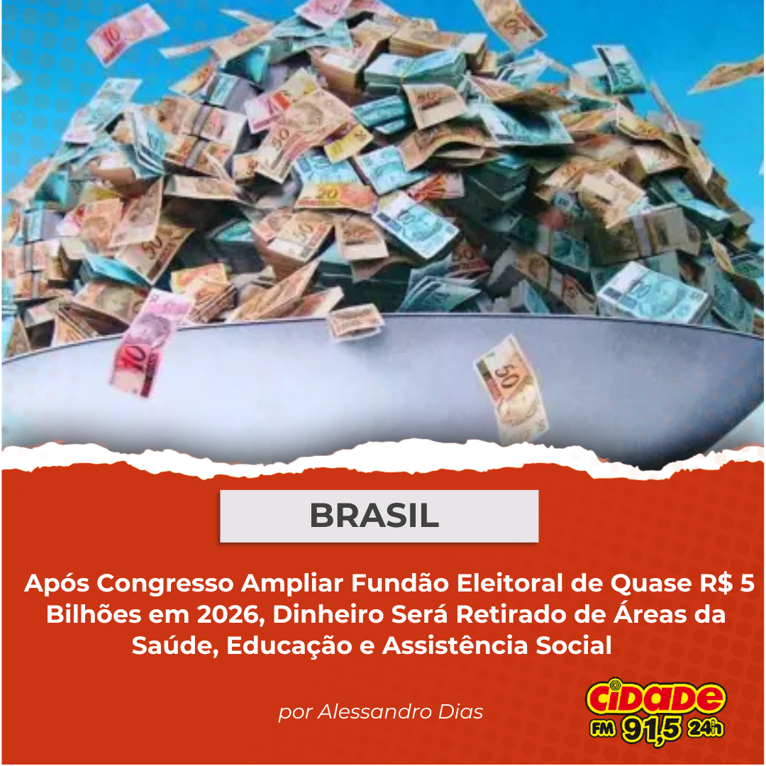 Geral BRASIL: Após Congresso Ampliar Fundão Eleitoral de Quase R$ 5 Bilhões em 2026, Dinheiro Será Retirado de Áreas da Saúde, Educação e Assistência Social 1 de outubro de 2025 Nenhum comentário