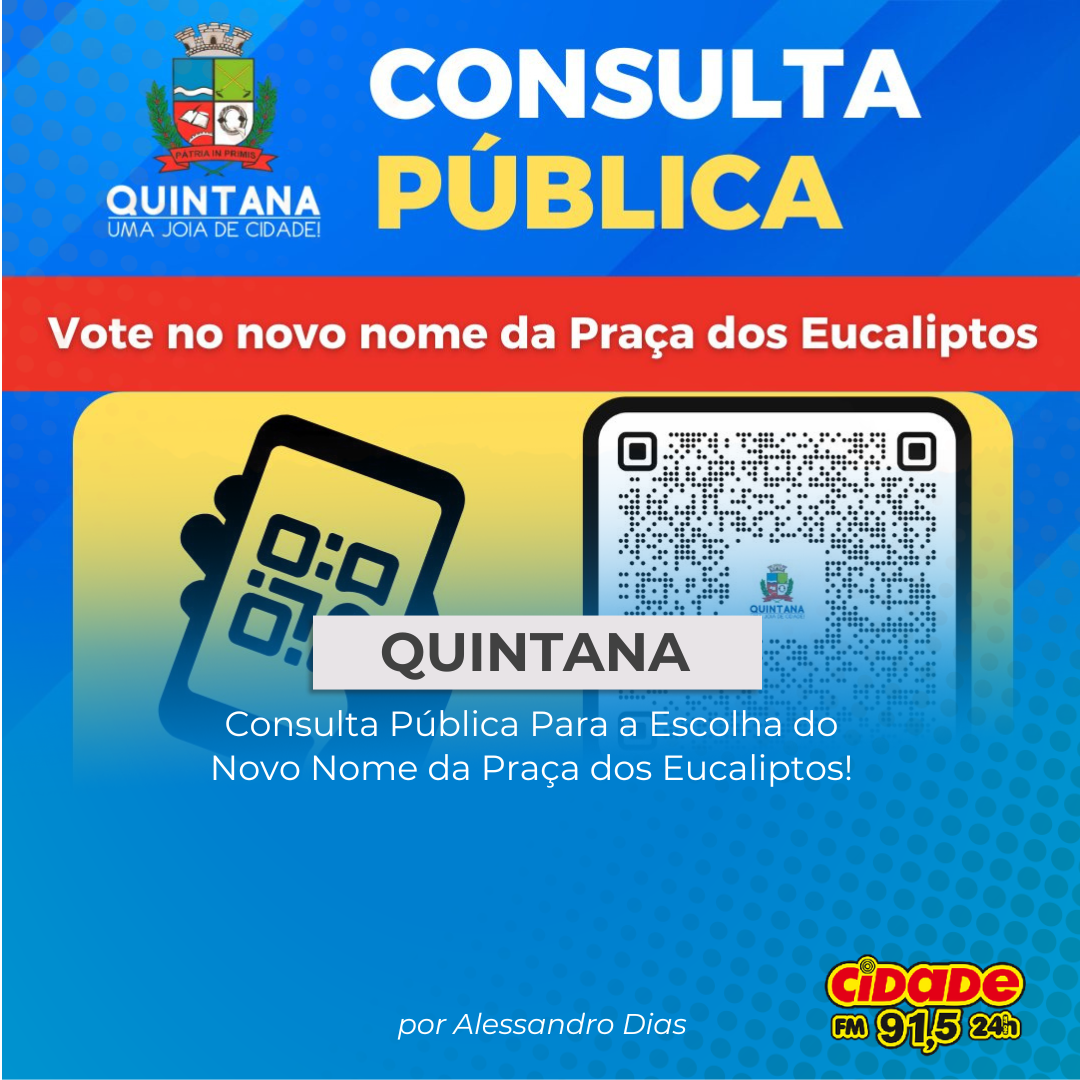 Geral QUINTANA: Consulta Pública Para a Escolha do Novo Nome da Praça dos Eucaliptos! 26 de setembro de 2025 Nenhum comentário