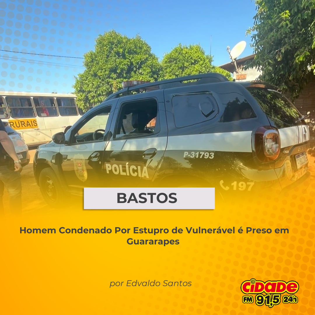 Geral BASTOS: Homem Condenado Por Estupro de Vulnerável é Preso em Guararapes 25 de setembro de 2025 Nenhum comentário