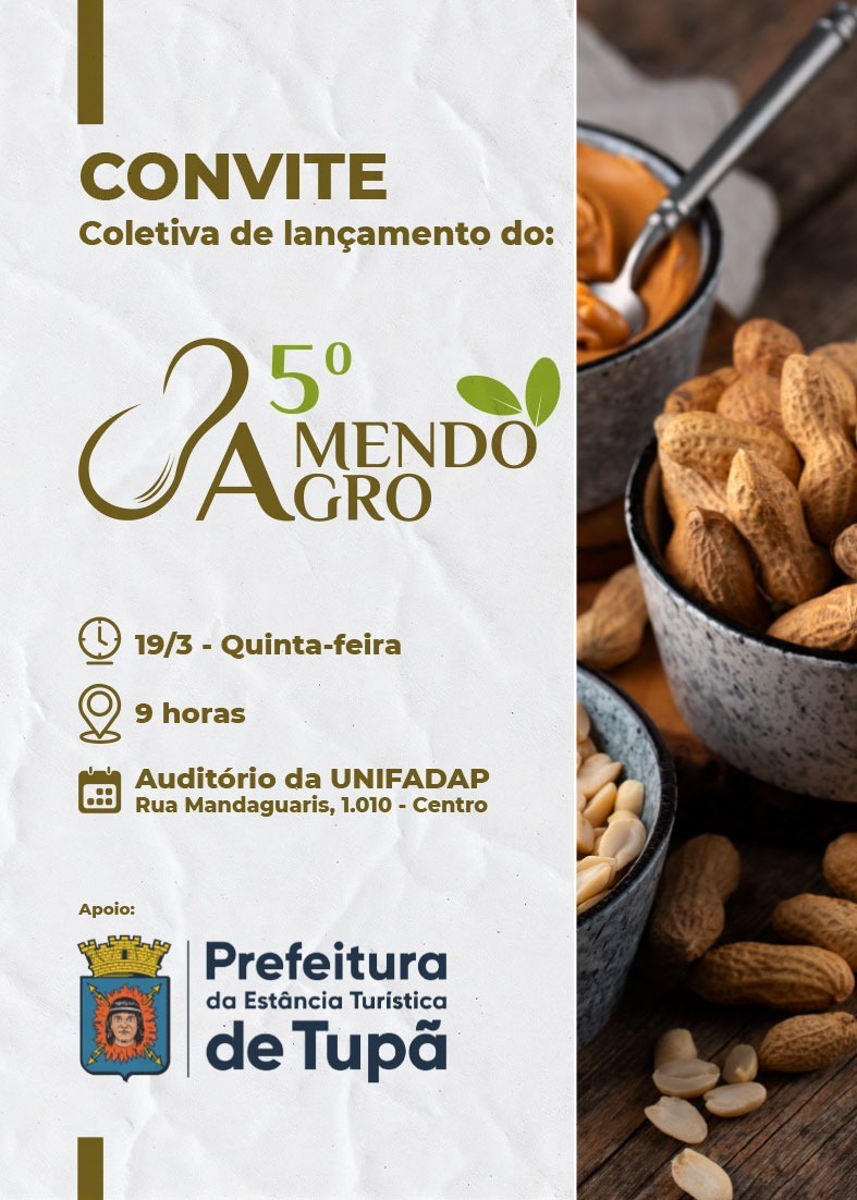 Geral Oii pessoal 😊 A Prefeitura convida para a Coletiva de Lançamento do 5º AmendoAgro, que será realizada nesta quinta-feira (19), a partir das 9h, no Auditório da UniFadap. Contamos com a presença de todos. Obrigada. 18 de março de 2026 Nenhum comentário