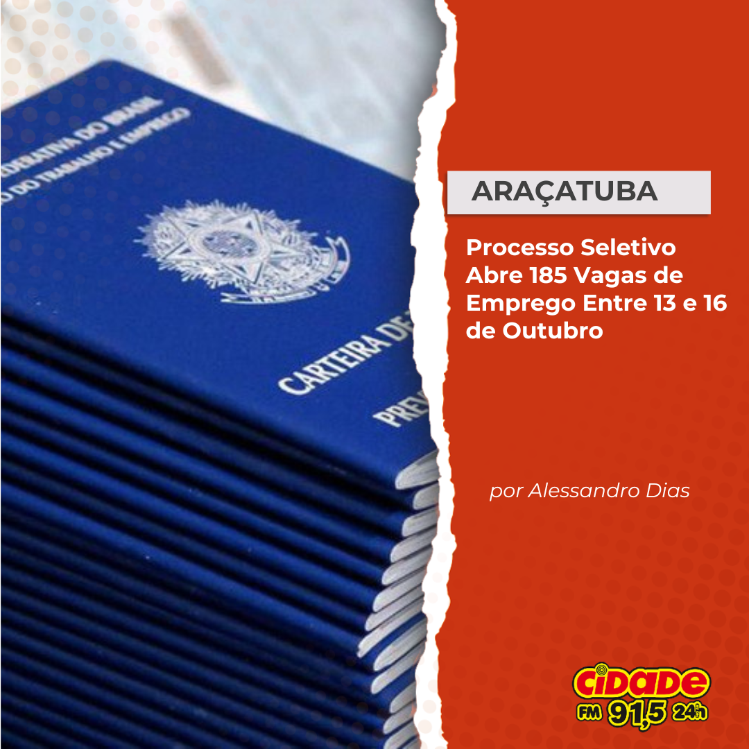 Geral ARAÇATUBA: Processo Seletivo Abre 185 Vagas de Emprego Entre 13 e 16 de Outubro 24 de setembro de 2025 Nenhum comentário
