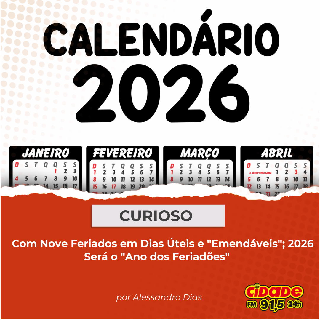 Geral CURIOSO: Com Nove Feriados em Dias Úteis e “Emendáveis”; 2026 Será o “Ano dos Feriadões” 24 de setembro de 2025 Nenhum comentário