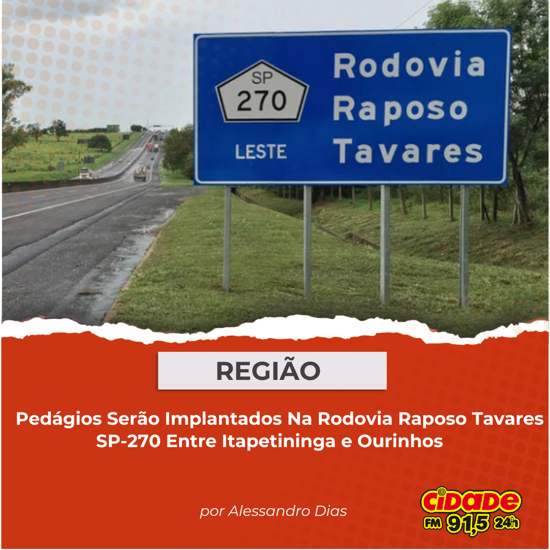 Geral REGIÃO: Pedágios Serão Implantados Na Rodovia Raposo Tavares SP-270 Entre Itapetininga e Ourinhos 23 de setembro de 2025 Nenhum comentário