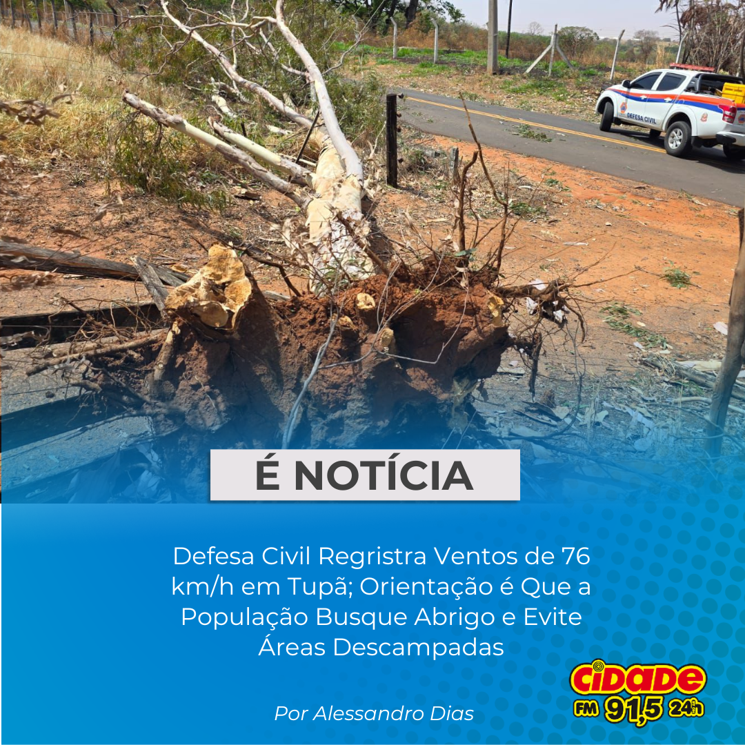 Geral É NOTÍCIA: Defesa Civil Regristra Ventos de 76 km/h em Tupã; Orientação é Que a População Busque Abrigo e Evite Áreas Descampadas 23 de setembro de 2025 Nenhum comentário