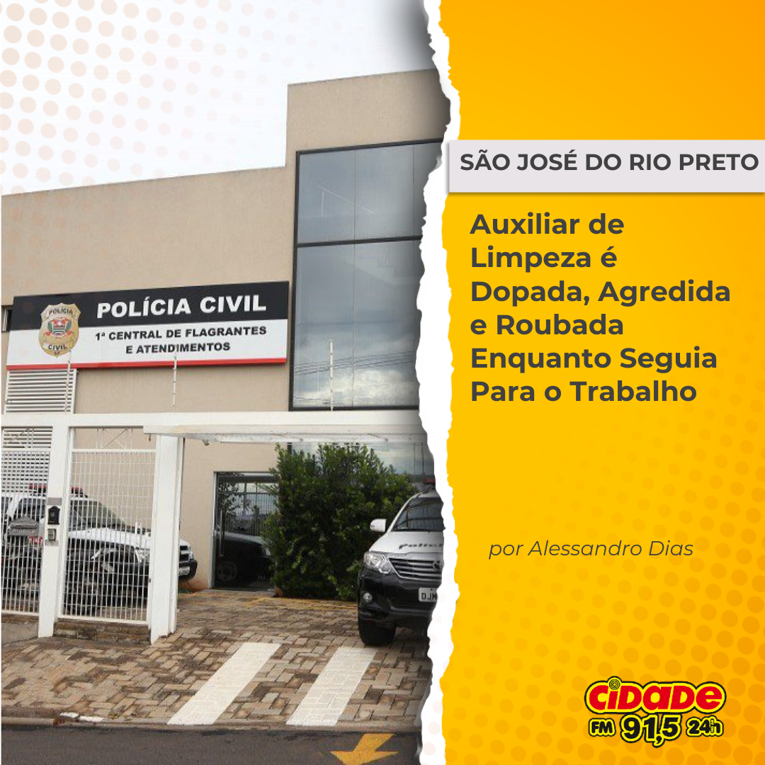 Geral SÃO JOSÉ DO RIO PRETO: Auxiliar de Limpeza é Dopada, Agredida e Roubada Enquanto Seguia Para o Trabalho 23 de setembro de 2025 Nenhum comentário