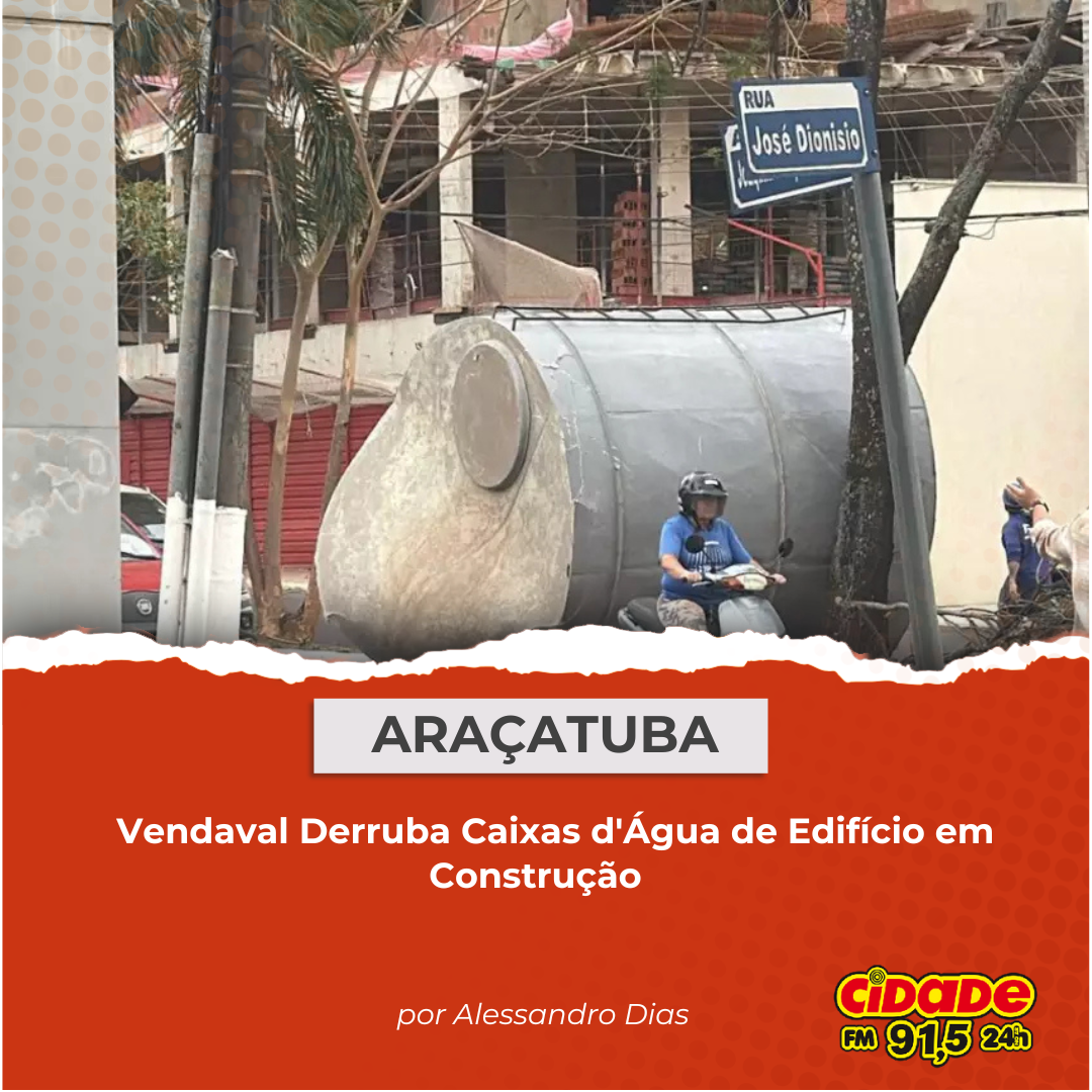 Geral ARAÇATUBA: Vendaval Derruba Caixas d’Água de Edifício em Construção 22 de setembro de 2025 Nenhum comentário