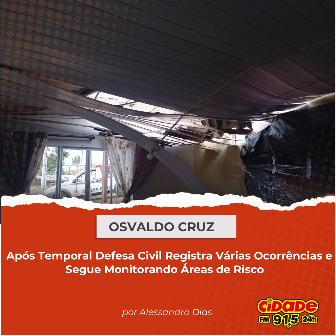 Geral OSVALDO CRUZ: Após Temporal Defesa Civil Registra Várias Ocorrências e Segue Monitorando Áreas de Risco 22 de setembro de 2025 Nenhum comentário