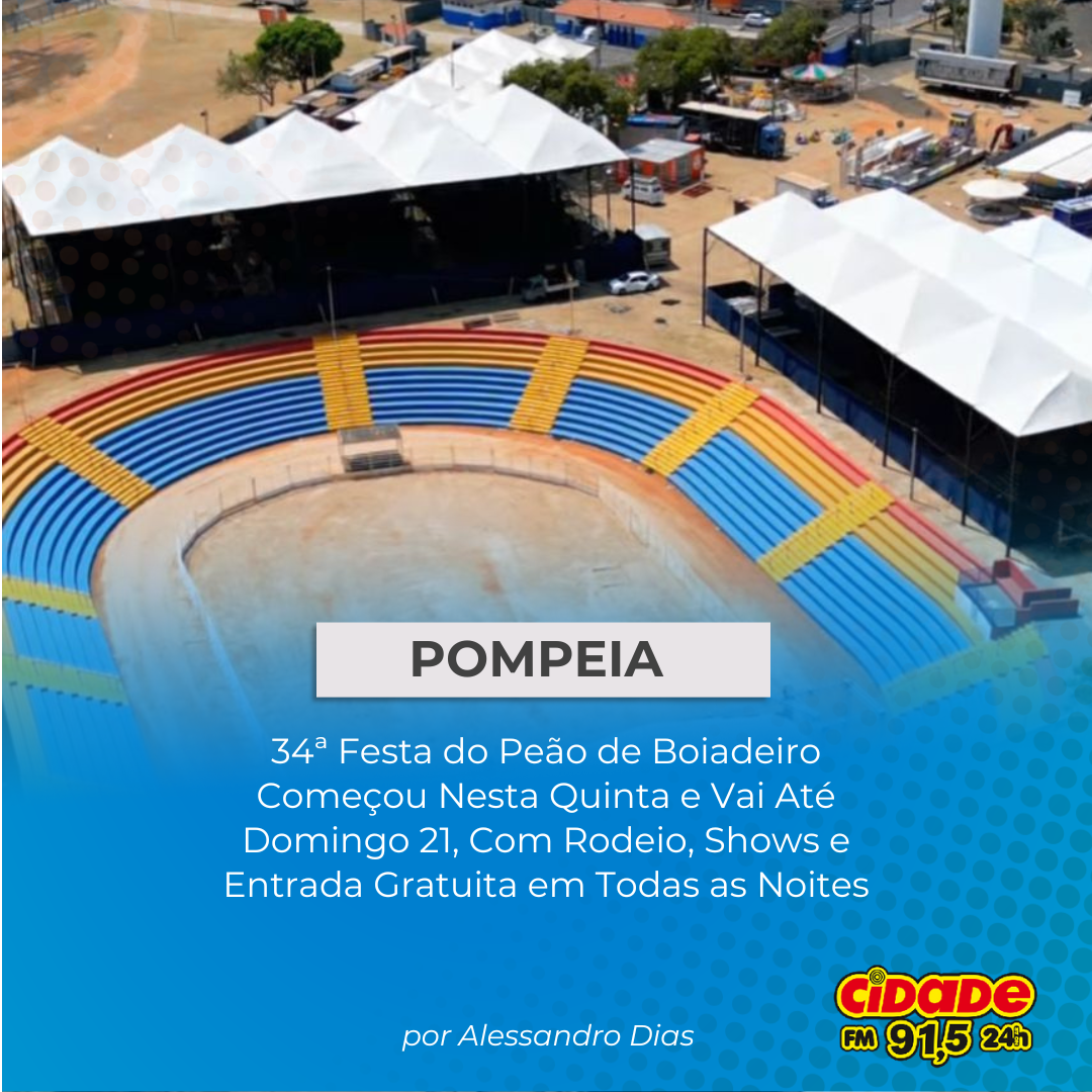 Geral POMPEIA: 34ª Festa do Peão de Boiadeiro Começou Nesta Quinta e Vai Até Domingo 21, Com Rodeio, Shows e Entrada Gratuita em Todas as Noites 19 de setembro de 2025 Nenhum comentário