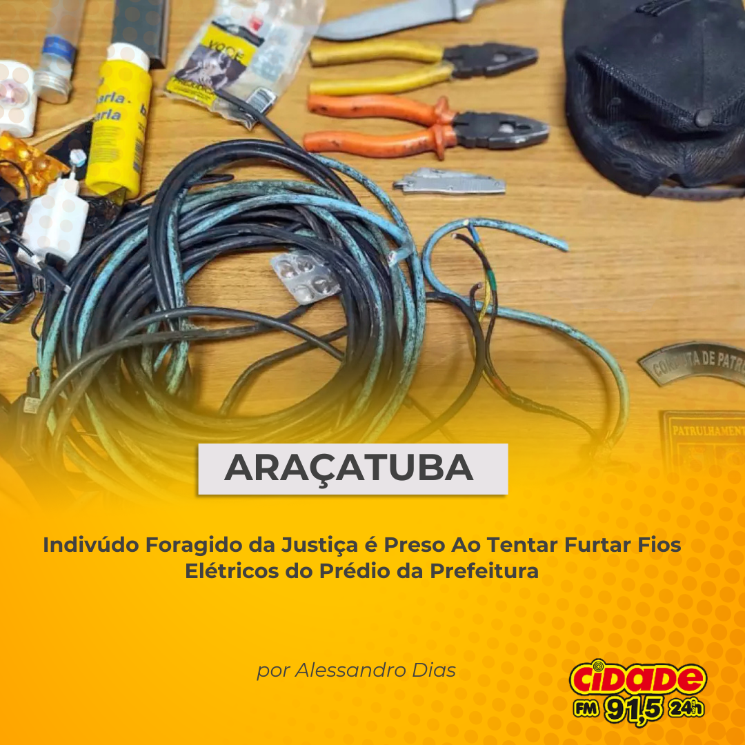 Geral ARAÇATUBA: Indivúdo Foragido da Justiça é Preso Ao Tentar Furtar Fios Elétricos do Prédio da Prefeitura 19 de setembro de 2025 Nenhum comentário