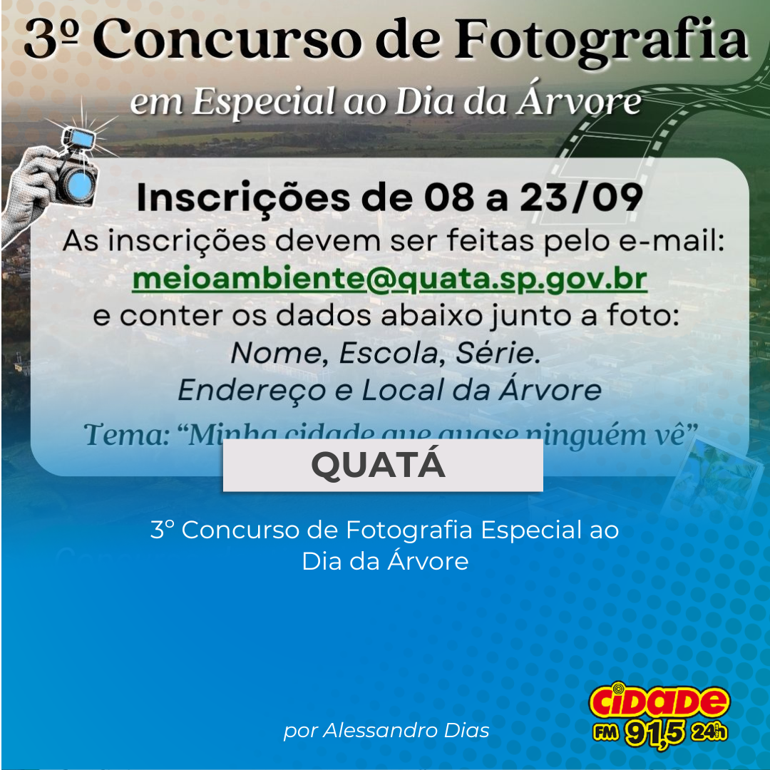Geral QUATÁ: 3º Concurso de Fotografia Especial ao Dia da Árvore 18 de setembro de 2025 Nenhum comentário