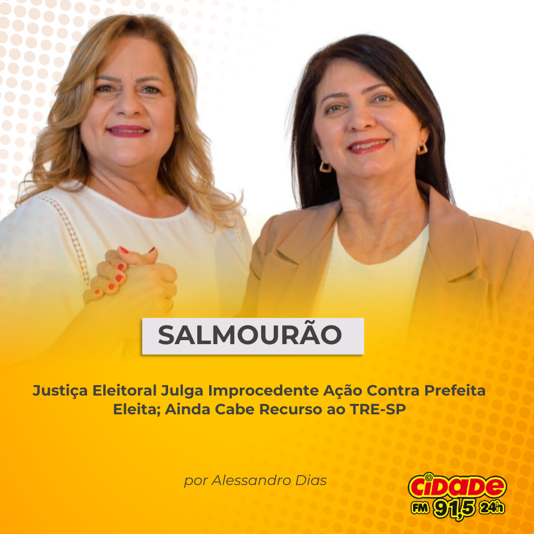 Geral SALMOURÃO: Justiça Eleitoral Julga Improcedente Ação Contra Prefeita Eleita; Ainda Cabe Recurso ao TRE-SP 18 de setembro de 2025 Nenhum comentário