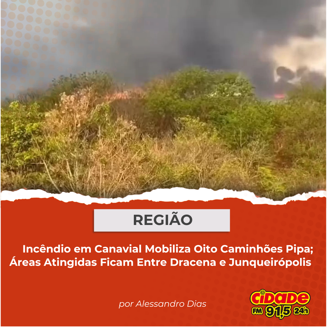 Geral REGIÃO: Incêndio em Canavial Mobiliza Oito Caminhões Pipa; Áreas Atingidas Ficam Entre Dracena e Junqueirópolis 18 de setembro de 2025 Nenhum comentário