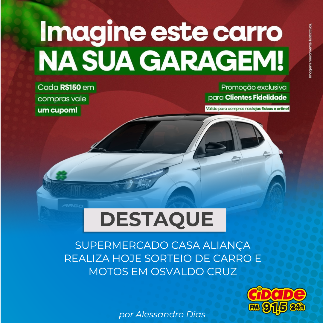 Geral DESTAQUE: SUPERMERCADO CASA ALIANÇA REALIZA HOJE SORTEIO DE CARRO E MOTOS EM OSVALDO CRUZ 31 de julho de 2025 Nenhum comentário
