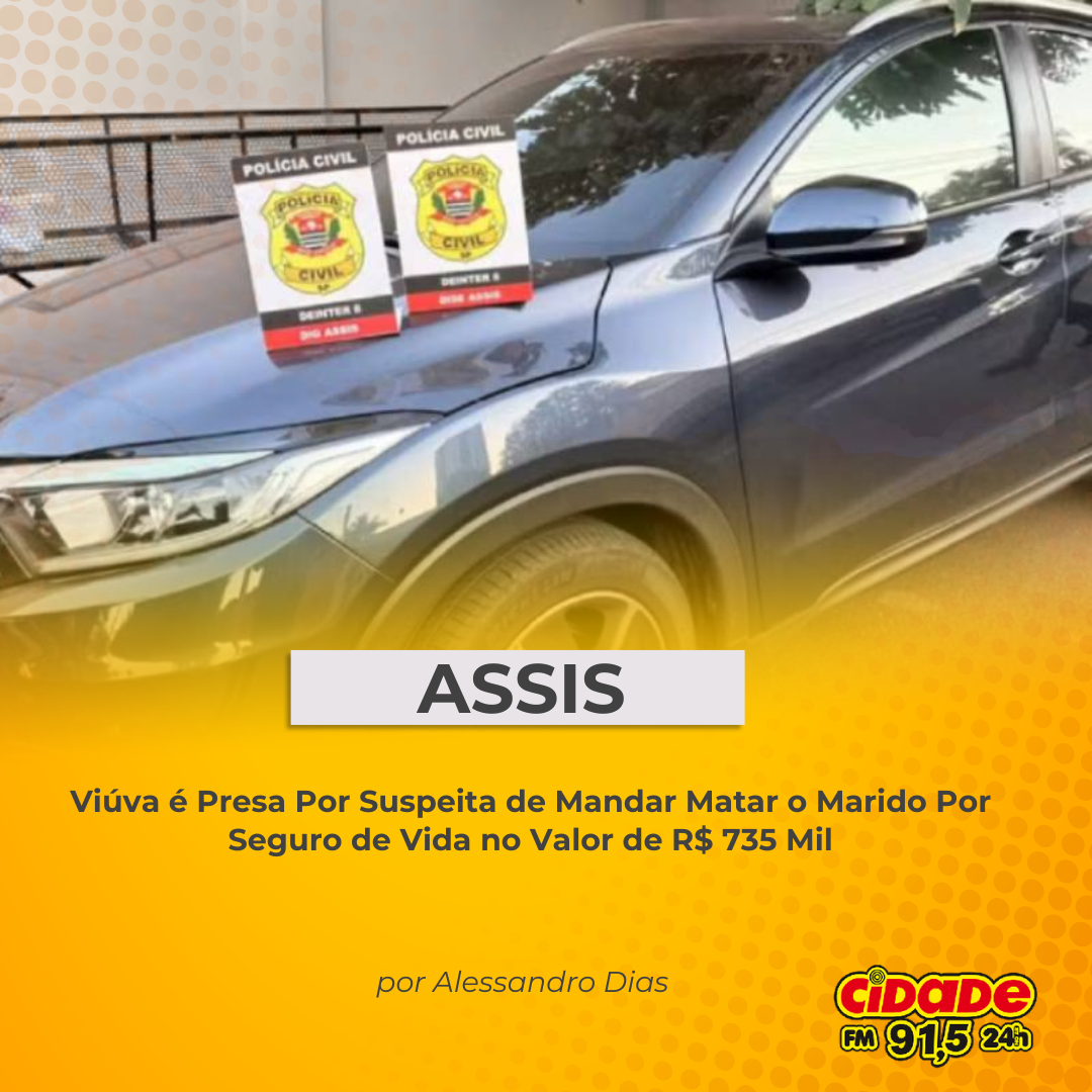 Geral ASSIS: Viúva é Presa Por Suspeita de Mandar Matar o Marido Por Seguro de Vida no Valor de R$ 735 Mil 25 de julho de 2025 Nenhum comentário