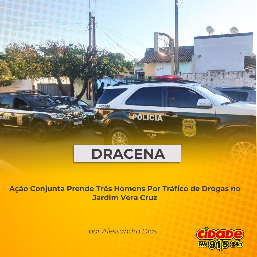 Geral DRACENA: Ação Conjunta Prende Três Homens Por Tráfico de Drogas no Jardim Vera Cruz 7 de julho de 2025 Nenhum comentário