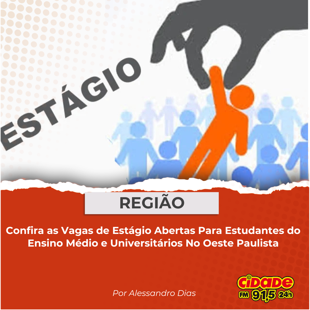 Geral REGIÃO: Confira as Vagas de Estágio Abertas Para Estudantes do Ensino Médio e Universitários No Oeste Paulista 3 de julho de 2025 Nenhum comentário