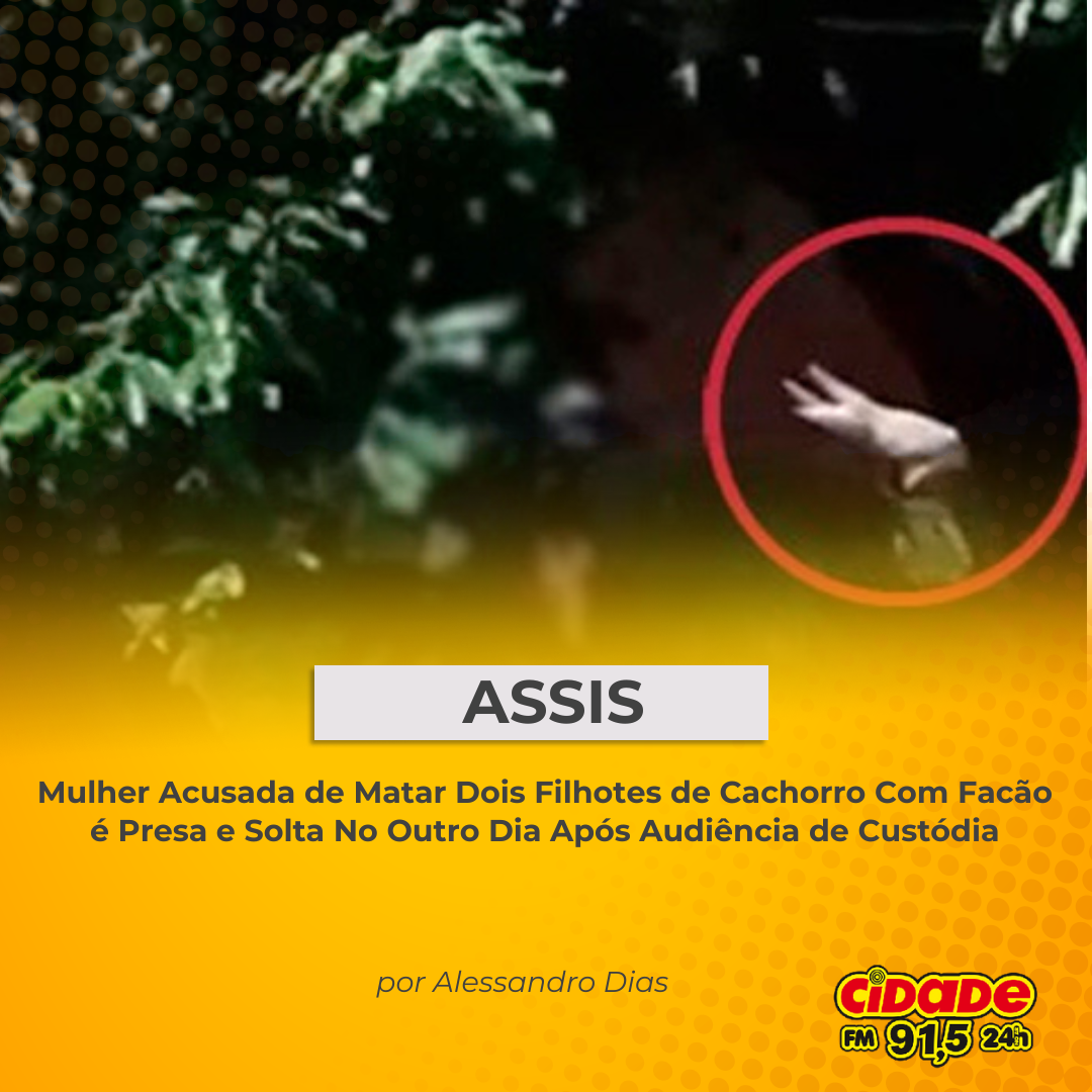 Geral ASSIS: Mulher Acusada de Matar Dois Filhotes de Cachorro Com Facão é Presa e Solta No Outro Dia Após Audiência de Custódia 12 de maio de 2025 Nenhum comentário