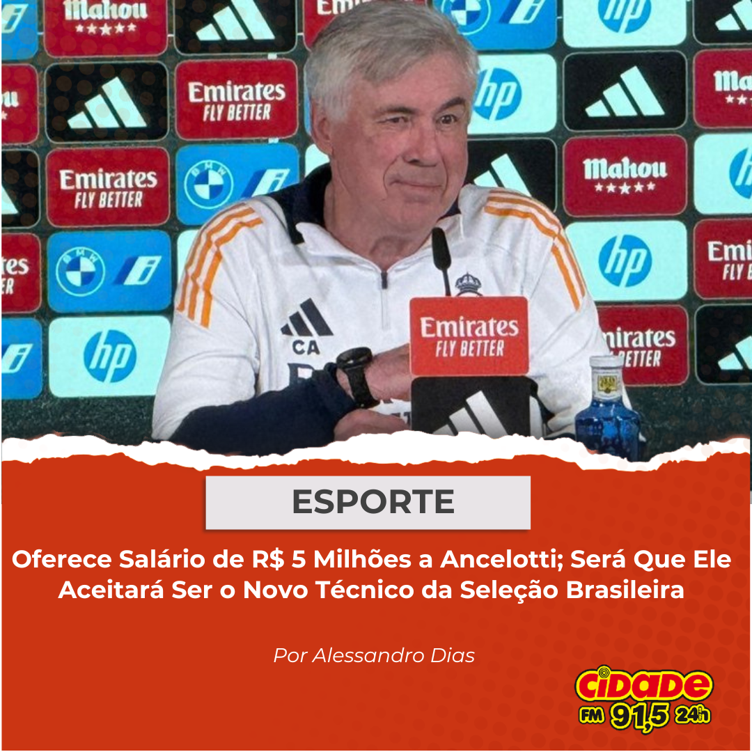 Geral ESPORTE: CBF Oferece Salário de R$ 5 Milhões a Ancelotti; Será Que Ele Aceitará Ser o Novo Técnico da Seleção Brasileira 28 de abril de 2025 Nenhum comentário