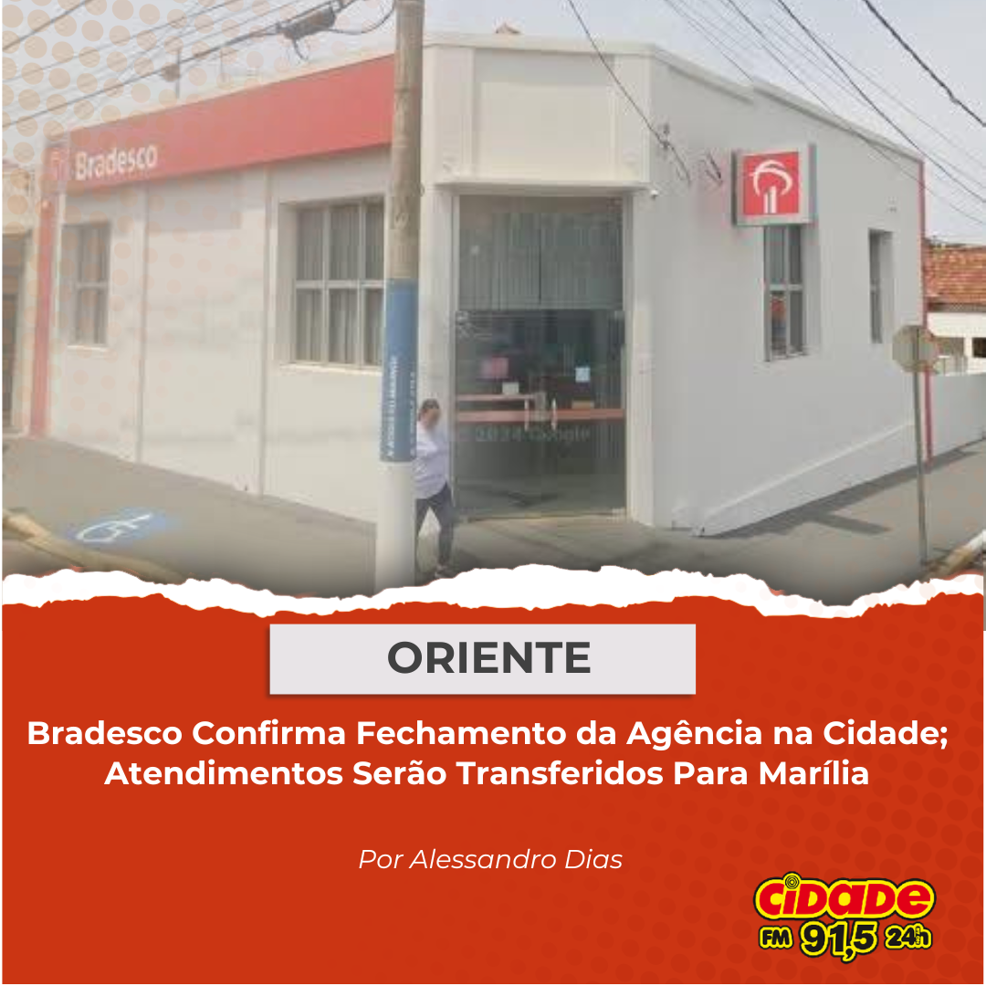 Geral ORIENTE: Bradesco Confirma Fechamento da Agência na Cidade; Atendimentos Serão Transferidos Para Marília 28 de abril de 2025 Nenhum comentário