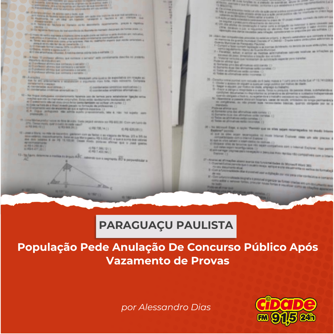 Geral PARAGUAÇU PAULISTA: População Pede Anulação De Concurso Público Após Vazamento de Provas 18 de março de 2025 Nenhum comentário