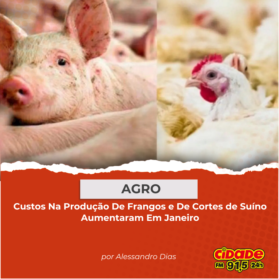 Geral AGRO: Custos Na Produção De Frangos e De Corte De Suínos Aumentam Em Janeiro 3 de março de 2025 Nenhum comentário