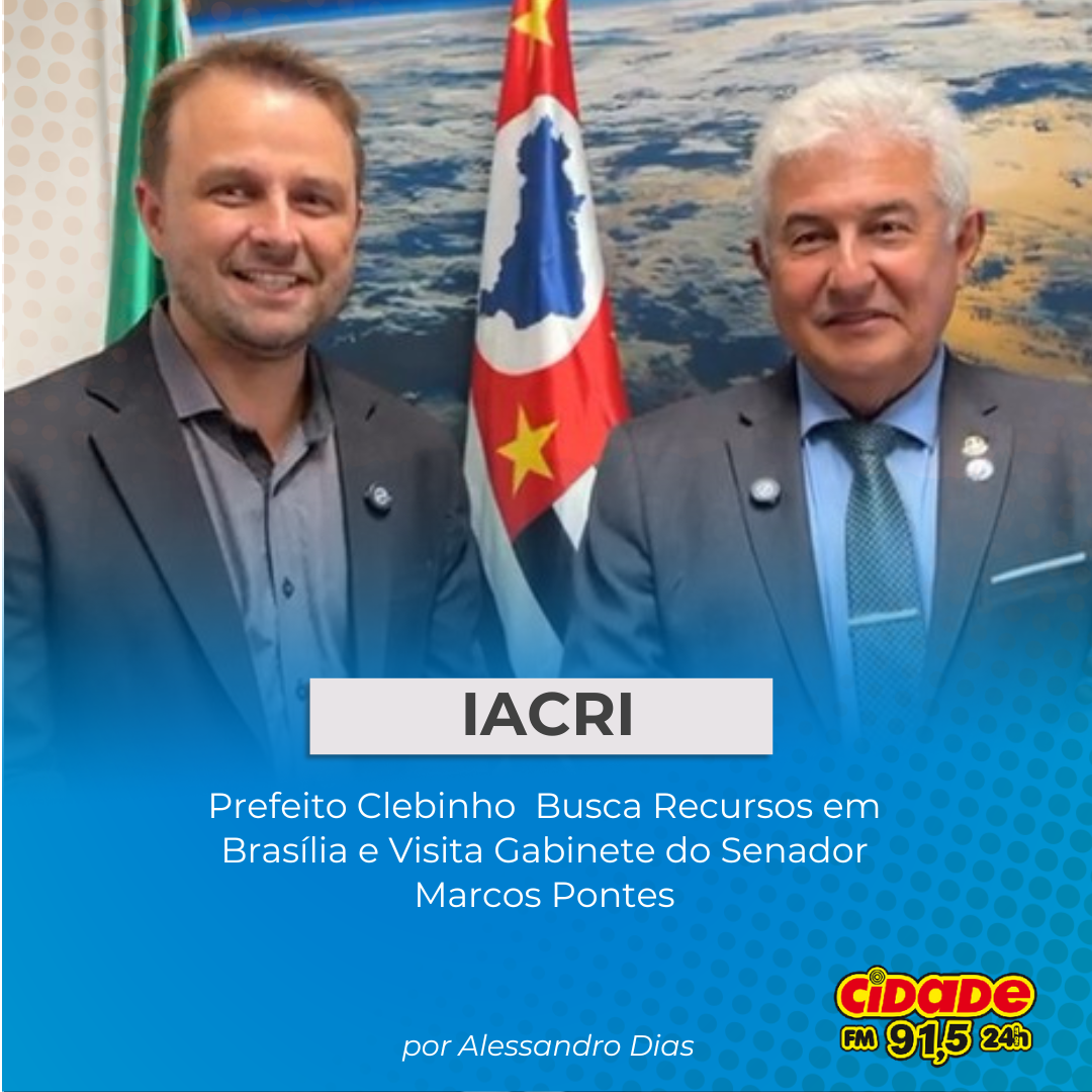 Geral IACRI: Prefeito Clebinho Busca Recursos em Brasília e Visita Gabinete do Senador Marcos Pontes 15 de fevereiro de 2025 Nenhum comentário