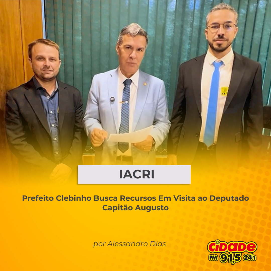 Geral IACRI: Prefeito Clebinho Busca Recursos Em Visita ao Deputado Capitão Augusto 14 de fevereiro de 2025 Nenhum comentário