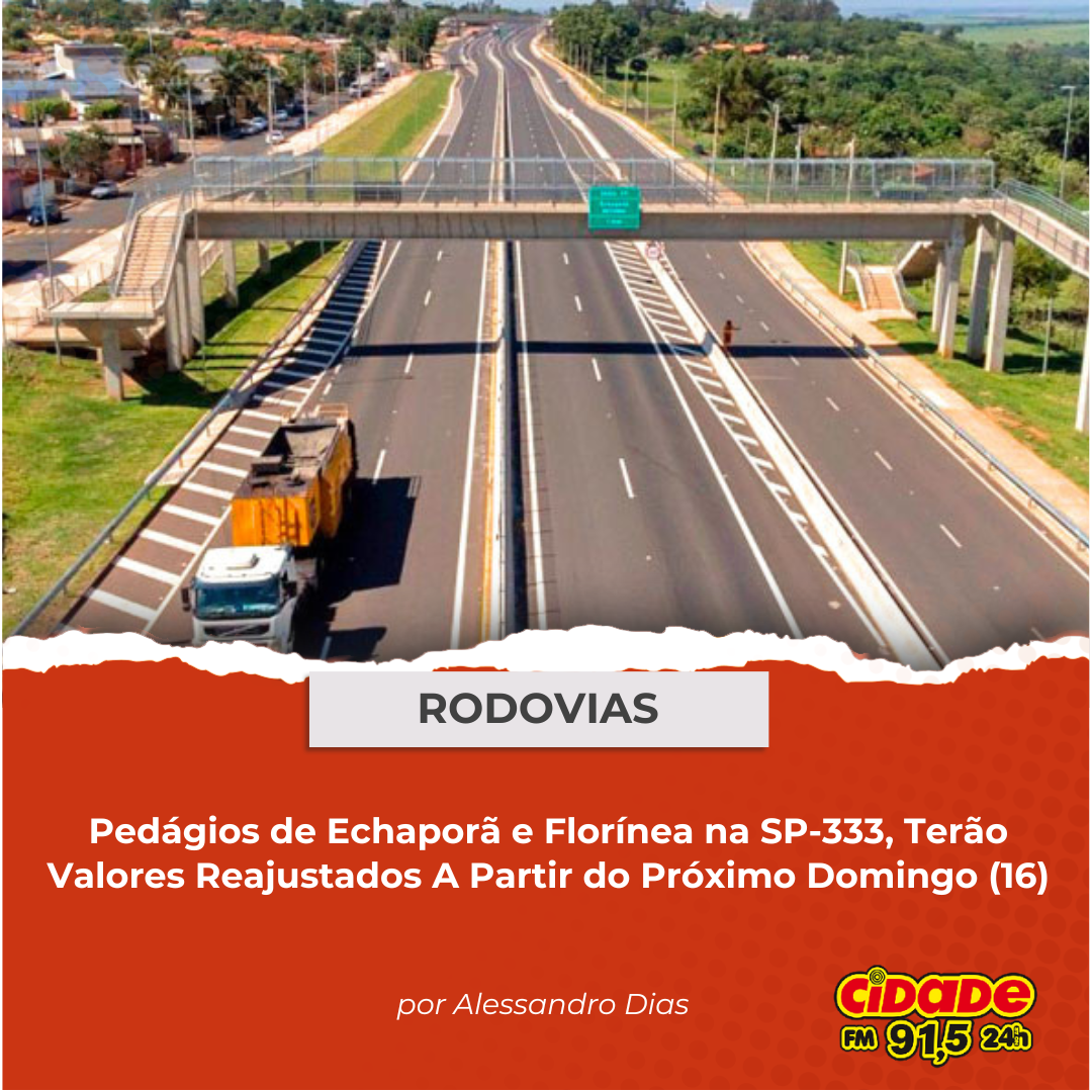 Geral RODOVIAS: Pedágios de Echaporã e Florínea na SP-333, Terão Valores Reajustados A Partir da 0H do Próximo Domingo (16) 13 de fevereiro de 2025 Nenhum comentário