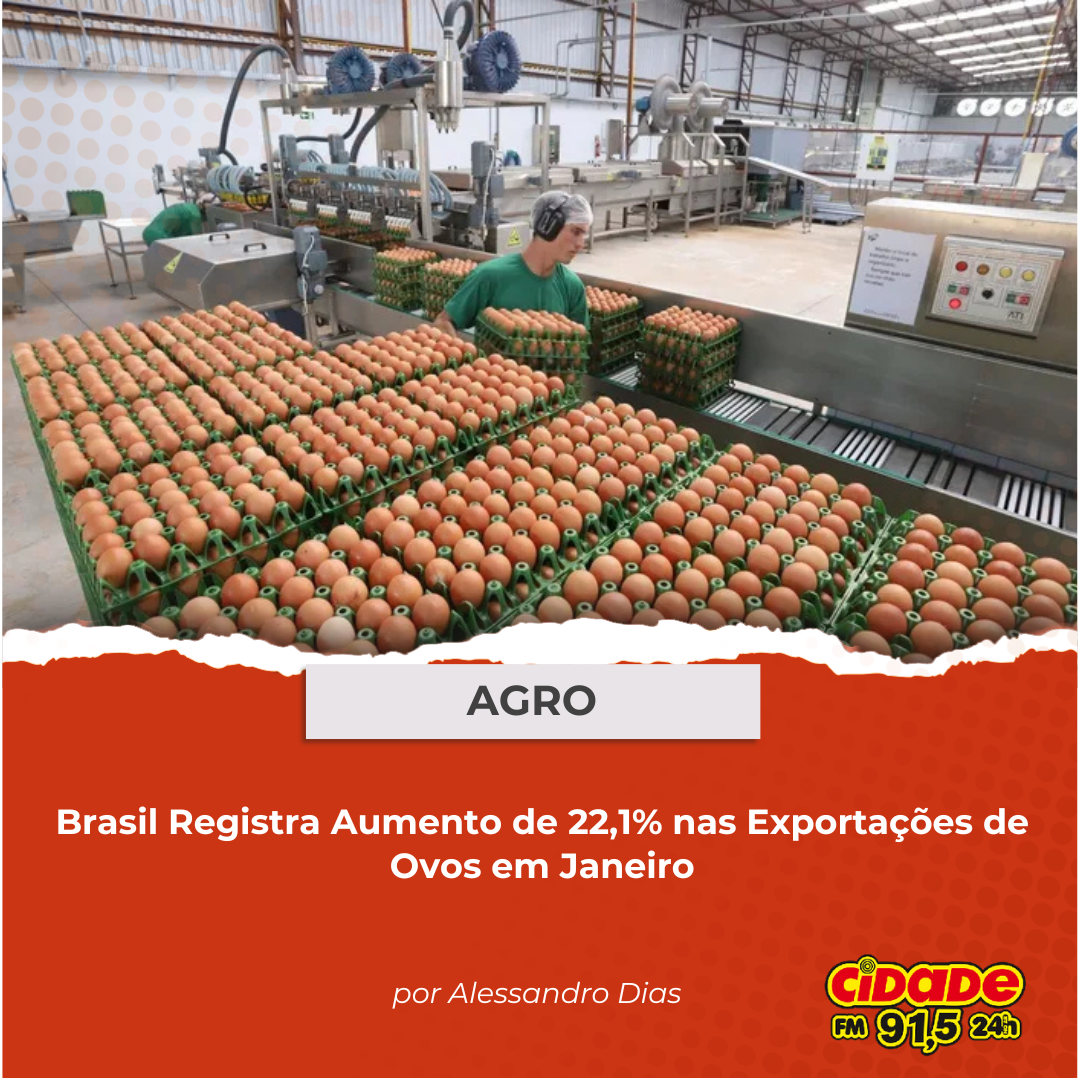 Geral AGRO: Brasil Registra Aumento de 22,1% nas Exportações de Ovos em Janeiro 14 de fevereiro de 2025 Nenhum comentário