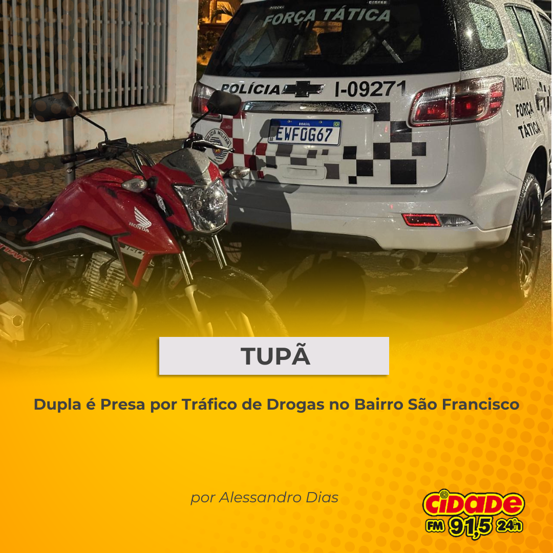 Geral TUPÃ: Dupla é Presa por Tráfico de Drogas no Bairro São Francisco 9 de fevereiro de 2025 Nenhum comentário