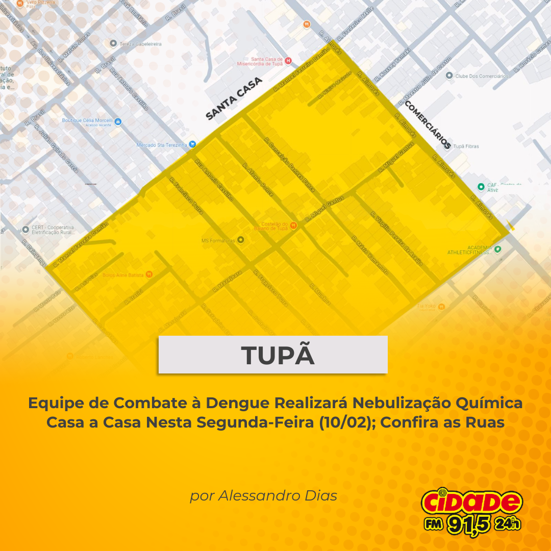 Geral 🚨 TUPÃ: Equipe de Combate à Dengue Realizará Nebulização Química Casa a Casa Nesta Segunda-Feira (10/02); Confira as Ruas 9 de fevereiro de 2025 Nenhum comentário
