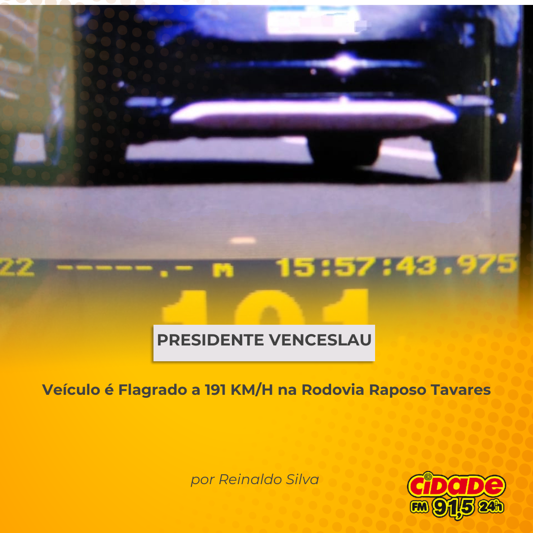 Geral PRESIDENTE VENCESLAU: Veículo é Flagrado a 191 KM/H na Rodovia Raposo Tavares 9 de fevereiro de 2025 Nenhum comentário