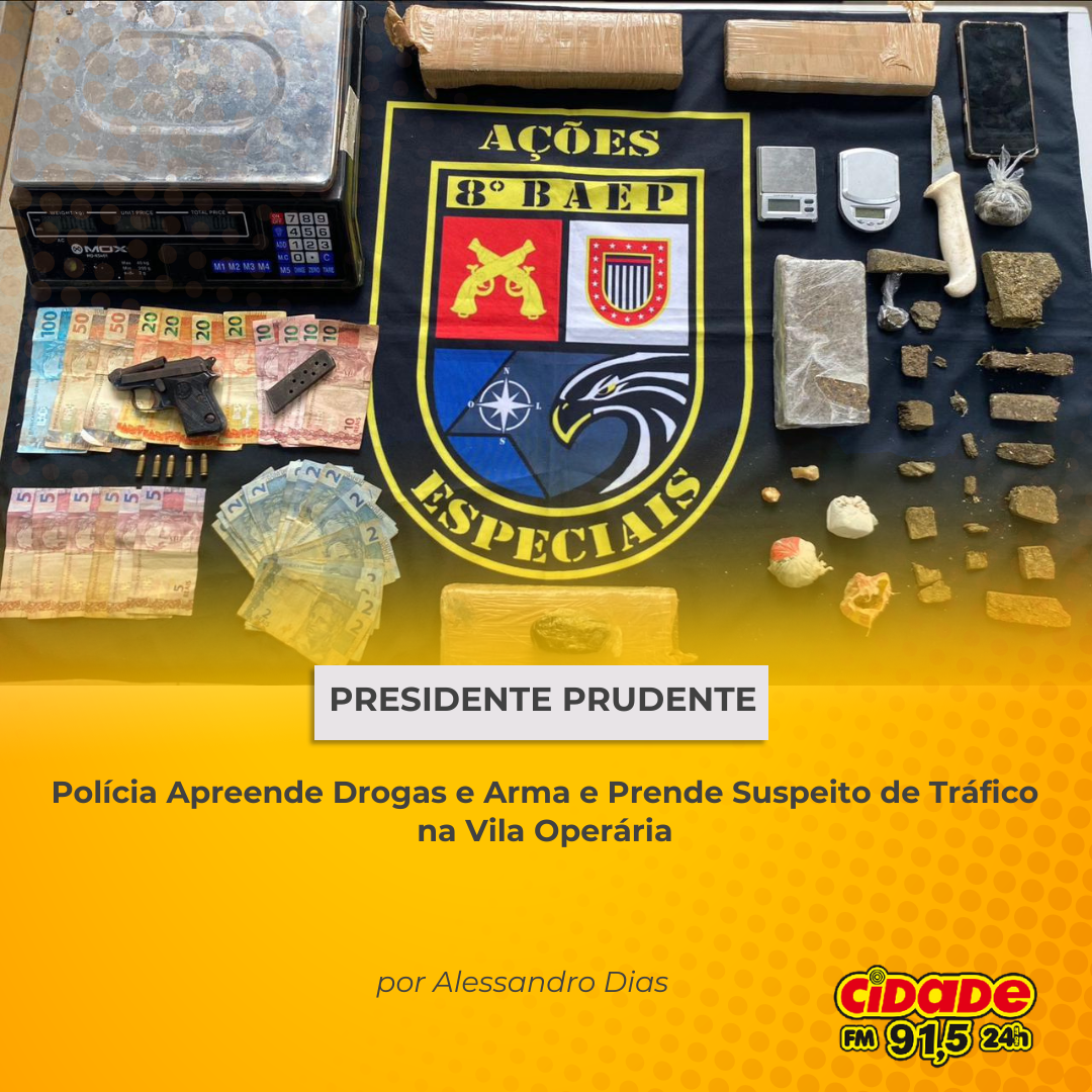 Geral PRESIDENTE PRUDENTE: Polícia Apreende Drogas e Arma, e Prende Suspeito de Tráfico de Drogas na Vila Operária 7 de fevereiro de 2025 Nenhum comentário
