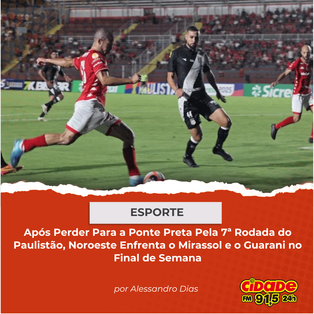 Geral ESPORTE: Após Perder Para a Ponte Preta em Casa Pela 7ª Rodada do Paulistão, Noroeste Enfrenta o Mirassol e o Guarani no Final de Semana 7 de fevereiro de 2025 Nenhum comentário