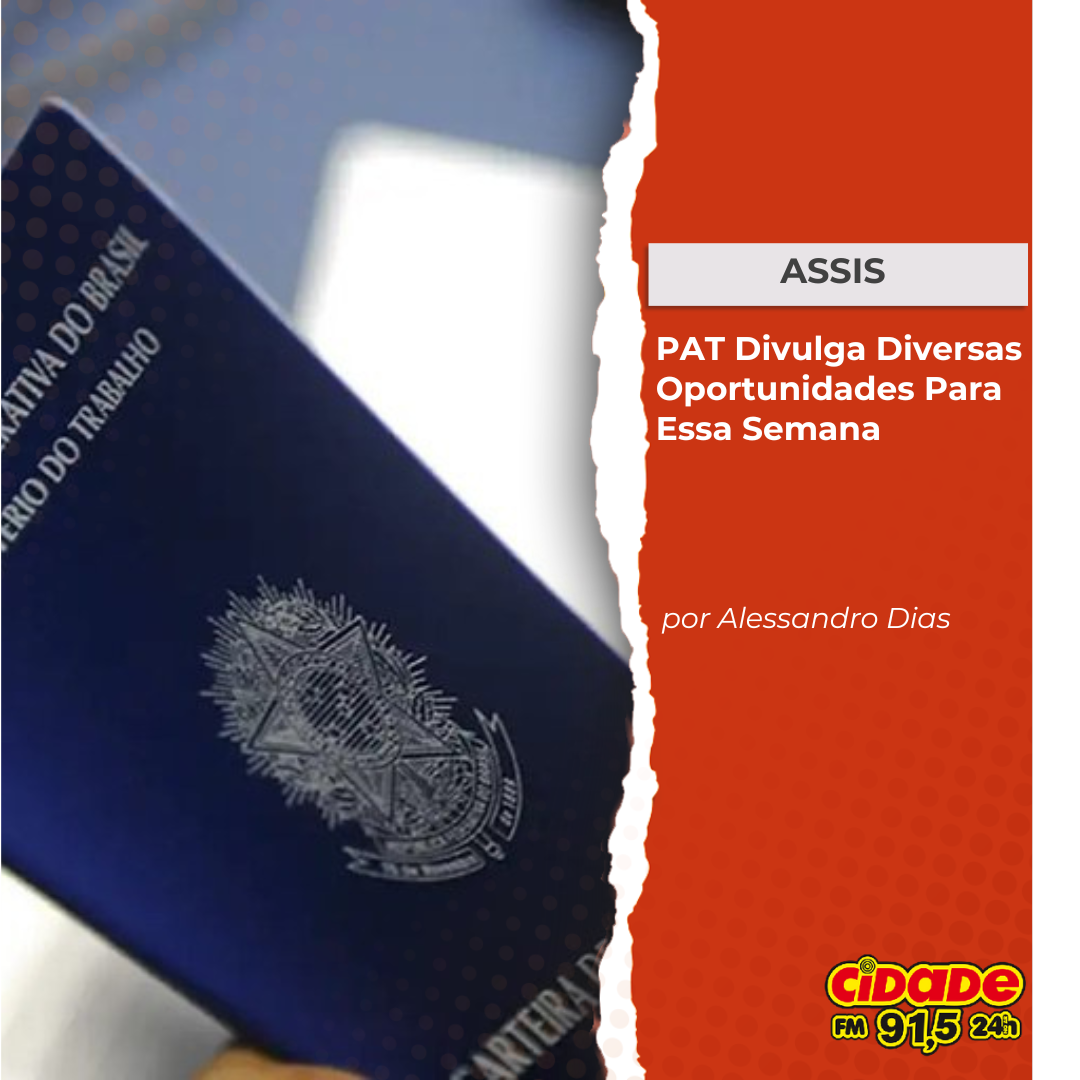 Geral ASSIS: PAT Divulga Diversas Oportunidades de Emprego Nesta Semana 5 de fevereiro de 2025 Nenhum comentário