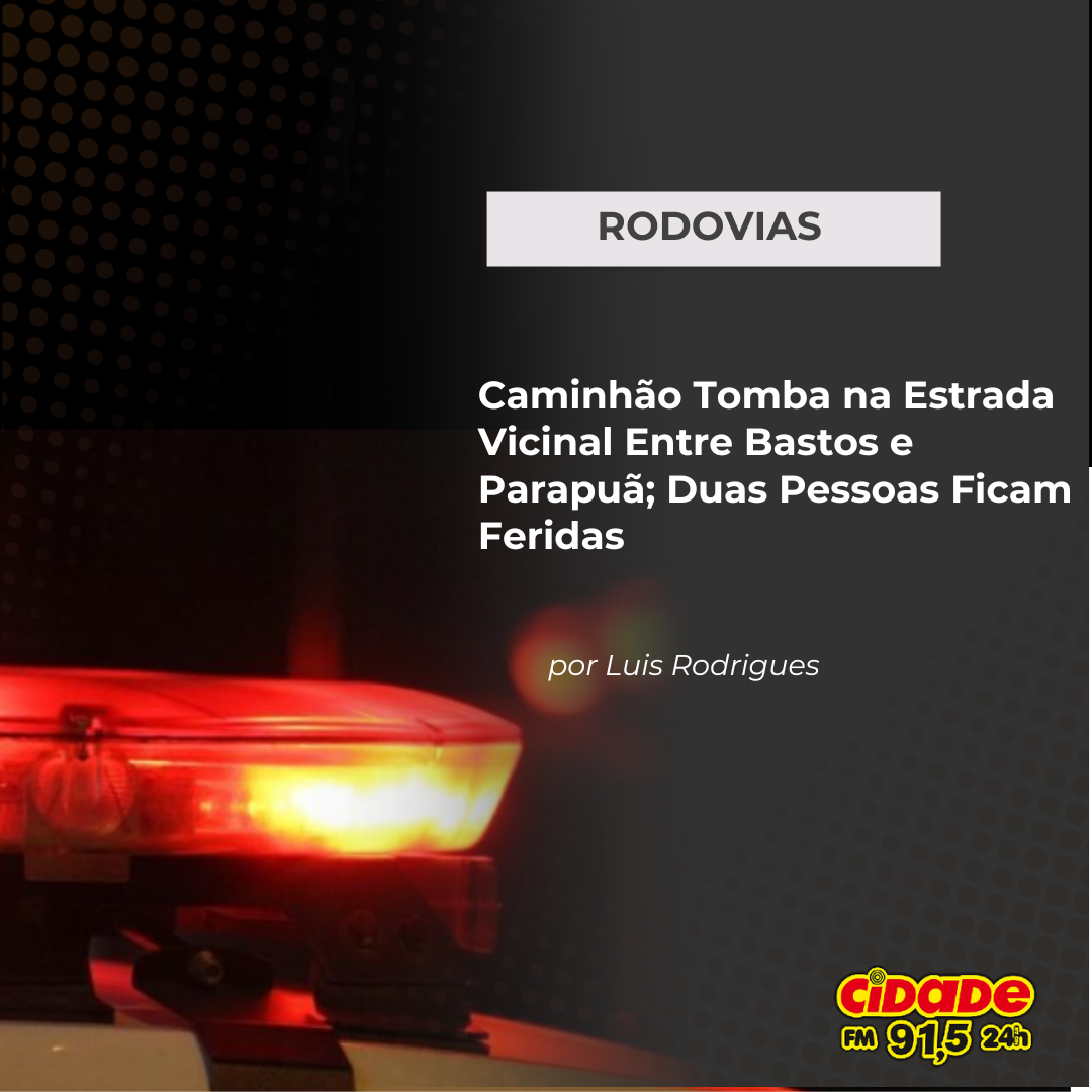 Geral RODOVIAS: Caminhão Tomba na Estrada Vicinal Entre Bastos e Parapuã; Duas Pessoas Ficam Feridas 1 de fevereiro de 2025 Nenhum comentário