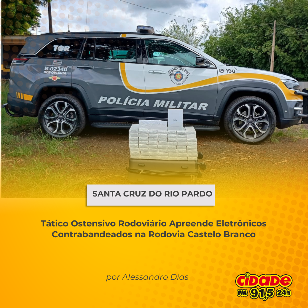 Geral SANTA CRUZ DO RIO PARDO: Tático Ostensivo Rodoviário Apreende Eletrônicos Contrabandeados na Rodovia Castelo Branco 1 de fevereiro de 2025 Nenhum comentário