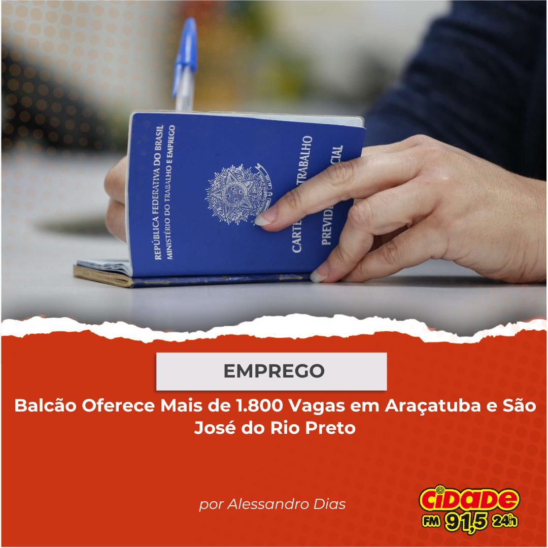 Geral EMPREGO: Balcão Oferece Mais de 1.800 Vagas em Araçatuba e São José do Rio Preto 1 de fevereiro de 2025 Nenhum comentário