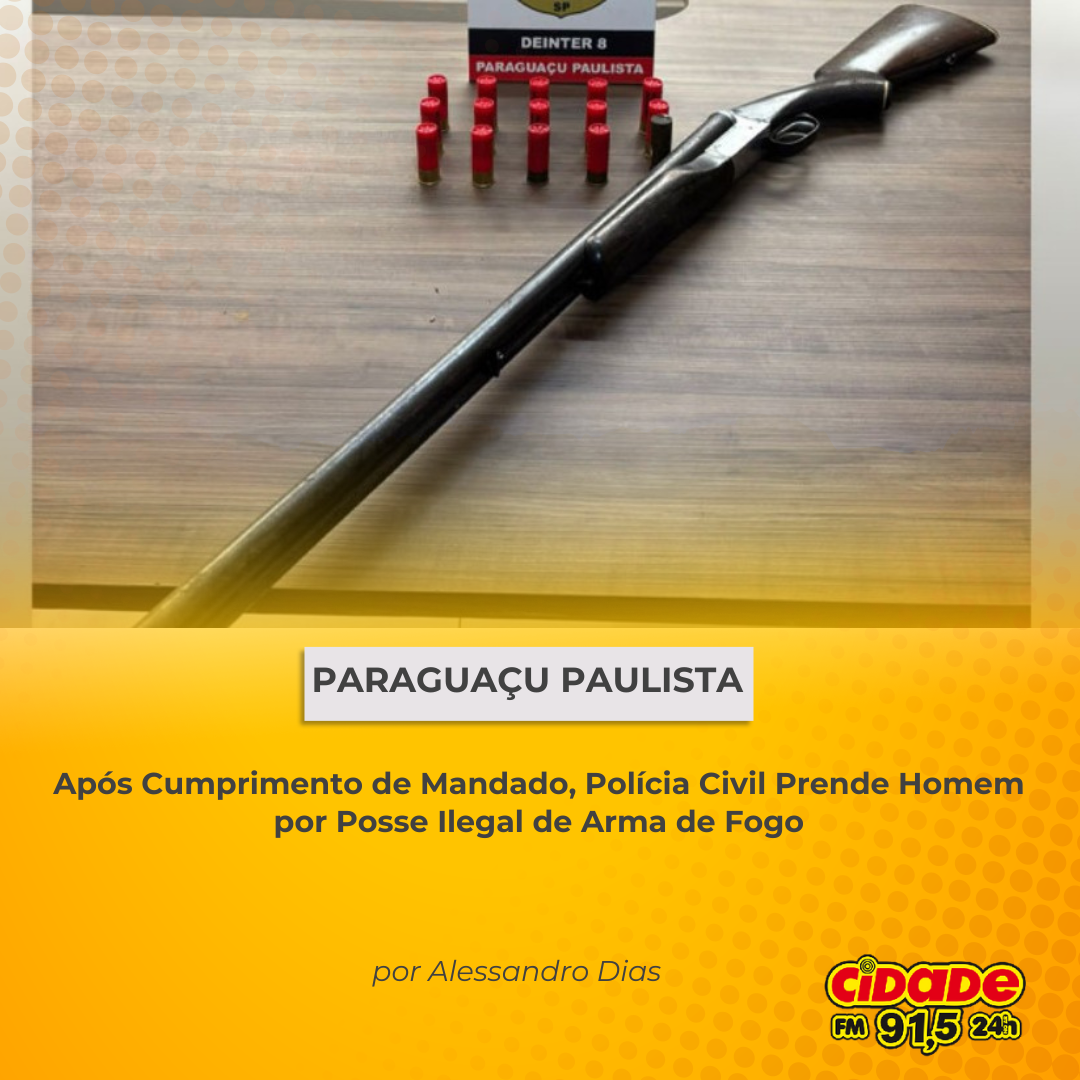 Geral PARAGUAÇU PAULISTA: Após Cumprimento de Mandado, Polícia Civil Prende Homem por Posse Ilegal de Arma de Fogo 31 de janeiro de 2025 Nenhum comentário