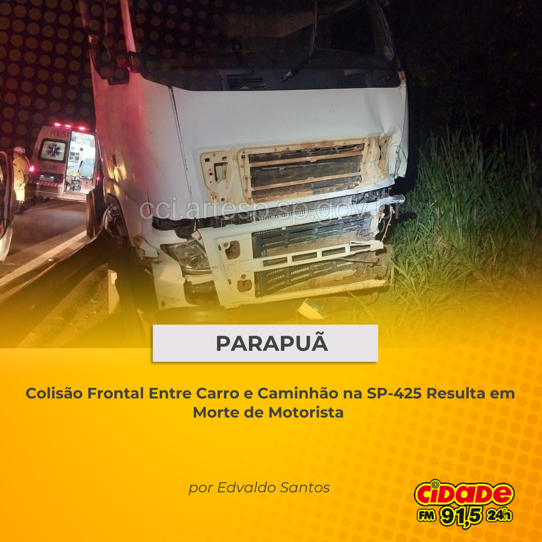 Geral PARAPUÃ: Colisão Frontal Entre Carro e Caminhão na SP-425 Resulta em Morte de Motorista 31 de janeiro de 2025 Nenhum comentário