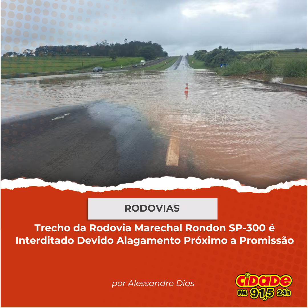 Geral RODOVIAS: Trecho da Rodovia Marechal Rondon SP-300 é Interditado Devido Alagamento Próximo a Promissão 31 de janeiro de 2025 Nenhum comentário