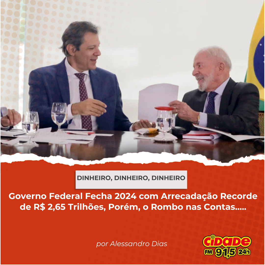 Geral DINHEIRO, DINHEIRO, DINHEIRO: Governo Federal Fecha 2024 com Arrecadação Recorde de R$ 2,65 Trilhões; Porém, o Rombo nas Contas….. 31 de janeiro de 2025 Nenhum comentário
