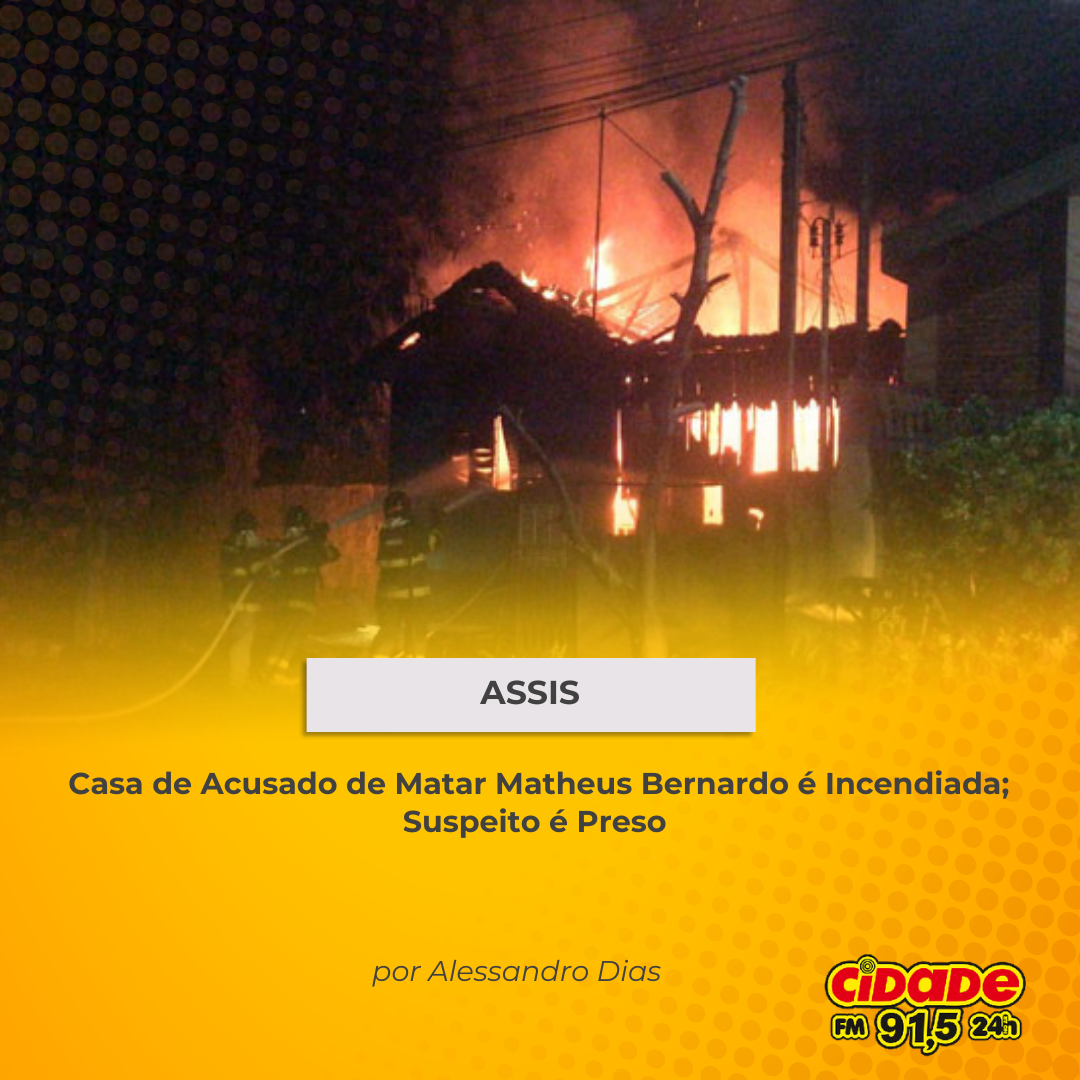 Geral ASSIS: Casa de Acusado de Matar Matheus Bernardo é Incendiada; Suspeito é Preso 20 de janeiro de 2025 Nenhum comentário