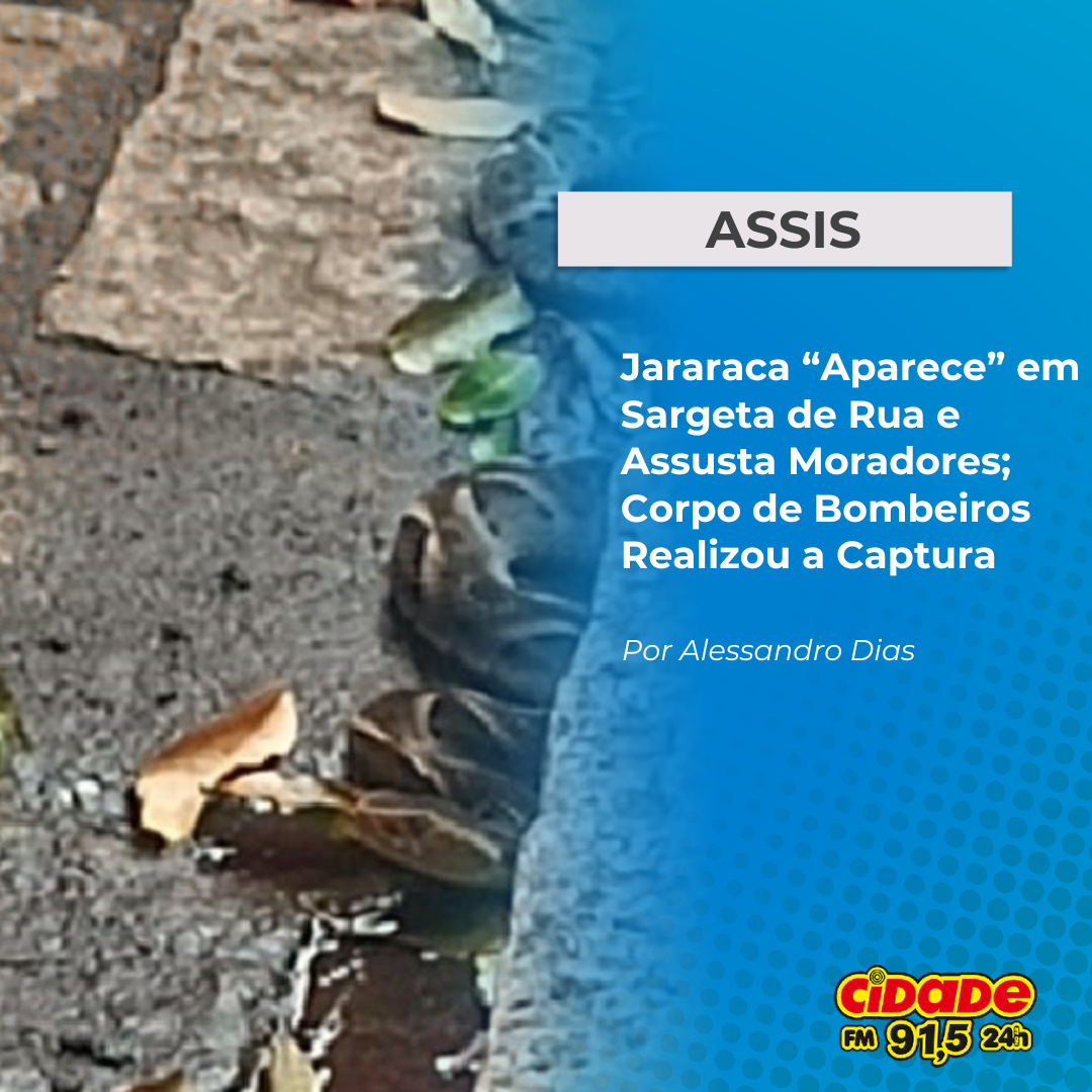 Geral ASSIS: Jararaca “Aparece” em Sarjeta de Rua e Assusta Moradores; Corpo de Bombeiros Realizou a Captura 18 de janeiro de 2025 Nenhum comentário