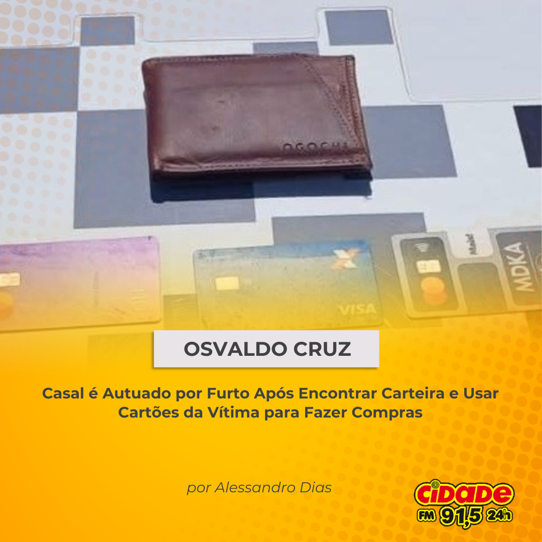 Geral OSVALDO CRUZ: Casal é Autuado por Furto Após Encontrar Carteira e Usar Cartões da Vítima Para Fazer Compras 18 de janeiro de 2025 Nenhum comentário