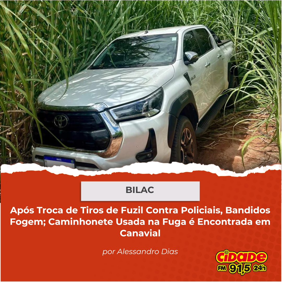 Geral BILAC: Após Troca de Tiros de Fuzil Contra Policiais, Bandidos Fogem; Caminhonete Usada na Fuga é Encontrada em Canavial 18 de janeiro de 2025 Nenhum comentário