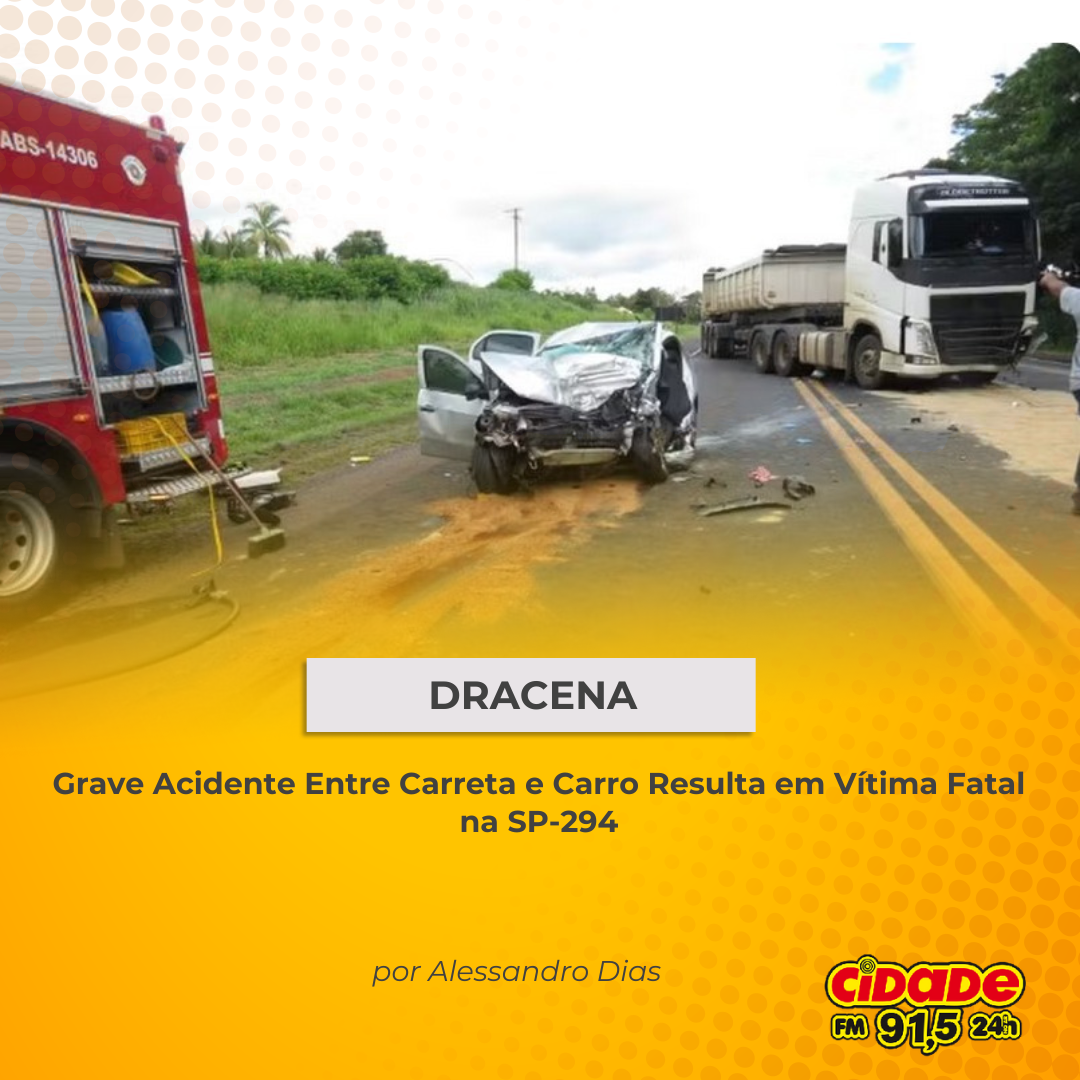 Geral DRACENA: Grave Acidente Entre Carreta e Carro Resulta em Vítima Fatal na SP-294 17 de janeiro de 2025 Nenhum comentário
