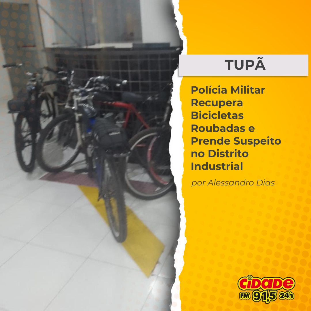 Geral TUPÃ: Polícia Militar Recupera Bicicletas Roubadas e Prende Suspeito no Distrito Industrial 16 de janeiro de 2025 Nenhum comentário