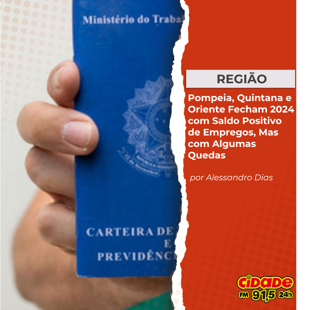 Geral REGIÃO: Pompeia, Quintana e Oriente Fecham 2024 com Saldo Positivo de Empregos, Mas com Algumas Quedas 12 de janeiro de 2025 Nenhum comentário